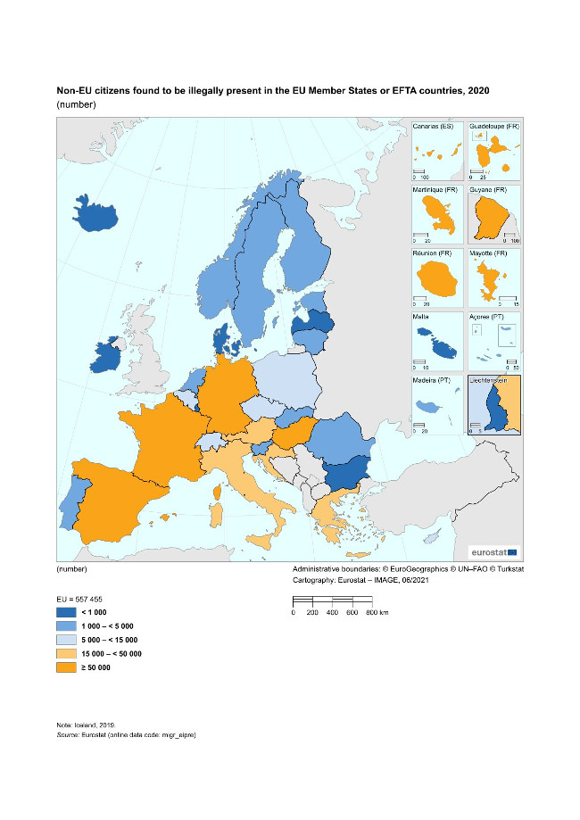 Ecco i dati Eurostat dei migranti illegali individuati nel 2020: